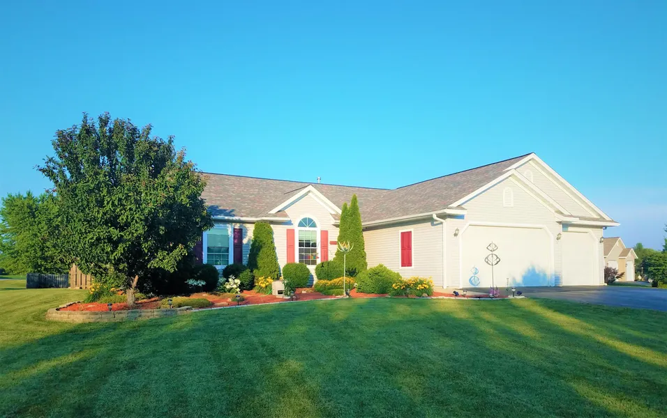 Beautiful Ranch style home with an open concept. Triple pane windows and patio doors. Vaulted ceilings. Gas log fireplace. Vinyl flooring in kitchen area. Kitchen has all stainless steel appliances and gas stove. Walk in, lighted pantry gives the kitchen more storage space. Laundry room, located off garage entry, with stacked washer/dryer. Master bedroom has connected walk in closet and bath with shower stall, new vanity, space heater and lights under sink. Full bath on main has a fiberglass tub with new faucets. Large whirlpool tub in basement bathroom. Basement has a large storage room. 3 car insulated and heated garage will keep your car warm in the harshest Wisconsin winters. New trex board decking. Shed in backyard. Hot water recirculation system with newer water heater (2-3 yrs).