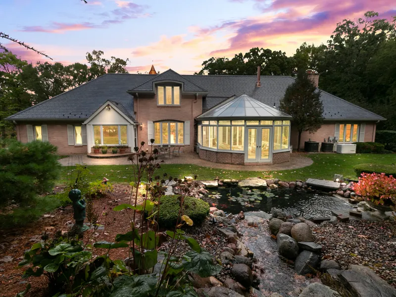 Situated on a gorgeous, private 3+ acre wooded lot, this meticulously maintained home offers the space and serenity you are looking for and is located just a few minutes from I-94 for an easy commute. Many updates including new windows, new slate roof (2018) and gutters, copper flashing and underground drainage system. Inside features large rooms including a dedicated office, LL rec room, a sauna, and plenty of storage. Quality built home also includes security system, reverse osmosis, sump pump and back-up generator. Professionally landscaped gardens, koi pond, and mature trees provide a peaceful and private setting.