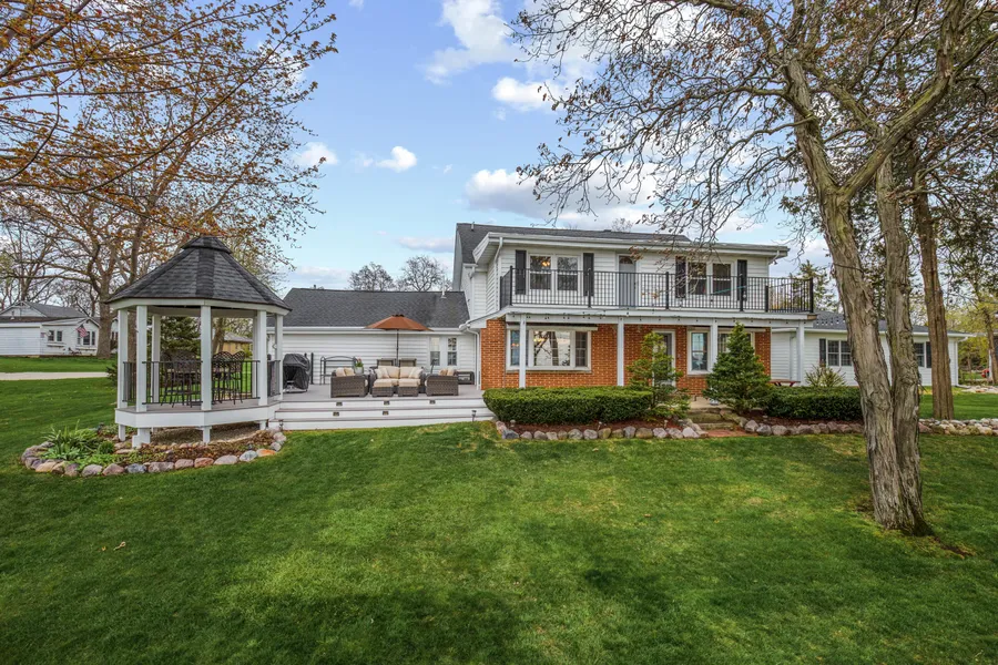 Enjoy stunning sunset views from this beautiful lake-front 4BD/2.5BA home. Minutes from highly-rated restaurants, 15 mins from shopping and less than 40 mins from Downtown Milwaukee. Enjoy 200 linear feet of shoreline on Eagle Lake perfect for water rec. This colonial home welcomes you to an open concept layout & rustic stone hearth in the family room and lake view picture windows. Chef kitchen features custom cabinets, granite counters, huge island that seats 6 and S.S. appliances. Easy patio access from formal dining room. Retreat to huge master suite with sitting area and in-suite bath. Plenty of storage and light in the secondary bedrooms. Entertain outdoors on the patio, around the fire pit or in the beautiful gazebo. Store your boats and other toys in a huge 5-car detached garage.
