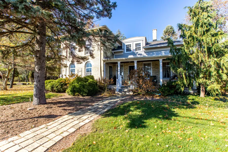 This historic 1856 cream brick carriage house in the Italianate style was built by the Royal Beach family, grandparents of Chester H. Beach, one of the founders of Hamilton-Beach Co. The 2300 sq. ft., 4-bedrooms, 2.5 baths, main floor master with en suite bath, laundry, and window seat overlooking stunning grounds. Classic arched windows, custom cabinets in kitchen and pantry, La"shaped living room with open staircase to second floor 12' x 7' landing, family room with built-ins. Large upstairs bedrooms with original wood floors and ample closet space. Gorgeous two story 38' x 25' stone barn with home office and endless potential. 2.5 car garage and 24' x 40' pole shed on 3-acre lot. Historic country charm in Yorkville with the convenience of being near Milwaukee and Chicago.