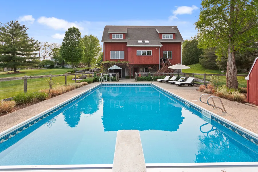 The White River Valley Farm is an enchanting luxury country estate offering an original farmhouse and spacious second home built for multi-generational enjoyment and tranquil escapes. Situated on 138 idyllic acres just 10 minutes from Lake Geneva, the main home offers five bedrooms, heart pine floors, three baths, a first-floor primary bedroom, two fireplaces, and loads of historical charm. Enjoy breathtaking views from the wrap-around porch, deck, or sitting poolside watching the cows graze. The 3,500 square foot "Guest Barn" boasts large-scale entertaining with five bedrooms, four baths, soaring beamed ceilings, a gourmet kitchen, and ample-sized multi-level living spaces. The White River meanders through the property, providing a sanctuary for wildlife in addition to the 200-acre park to the West which preserves your privacy and scenery. Several outbuildings to store your collectibles...