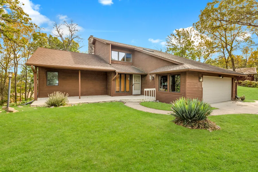 Beautiful contemporary home situated on over three acres of gorgeous, wooded lot showcasing amazing views and wildlife. Step into the main level featuring hardwood floors, vaulted ceilings, multiple decks, and a two-story great room with fieldstone fireplace that opens to an amazing sunroom. The bright and sunny kitchen/dining provides tons of storage and deck to relax and take in the views. Sought-after first-floor primary suite boasts a whirlpool tub, walk-in shower, and private deck. The laundry room and powder room complete the main level. Upstairs you'll find a loft overlooking the great room and three bedrooms; one with a skylight would be a perfect home office. The lower level is full walkout/egress with separate entrance—an ideal mother-in-law suite or apartment. Bring your dream home ideas!