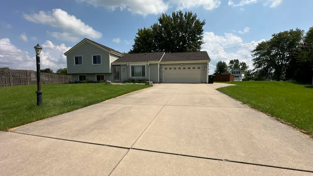 Welcome home to the Golden Meadows neighborhood! This gorgeous tri-level on a cul-de-sac with a brand new roof and HVAC system is sure to please! This home features 3 bedrooms on the upper level with a dual-entry full bathroom off the master and an additional bedroom and full bathroom in the lower level. Walk into your main living level with beautiful vaulted ceilings and an open floor concept shining with natural light. Enjoy your fenced in deck area or your above ground pool without the worry of damage to the low maintenance stamped concrete flooring throughout home. This home also sits on almost half an acre with 2 garage spaces as well as additional parking in the driveway.