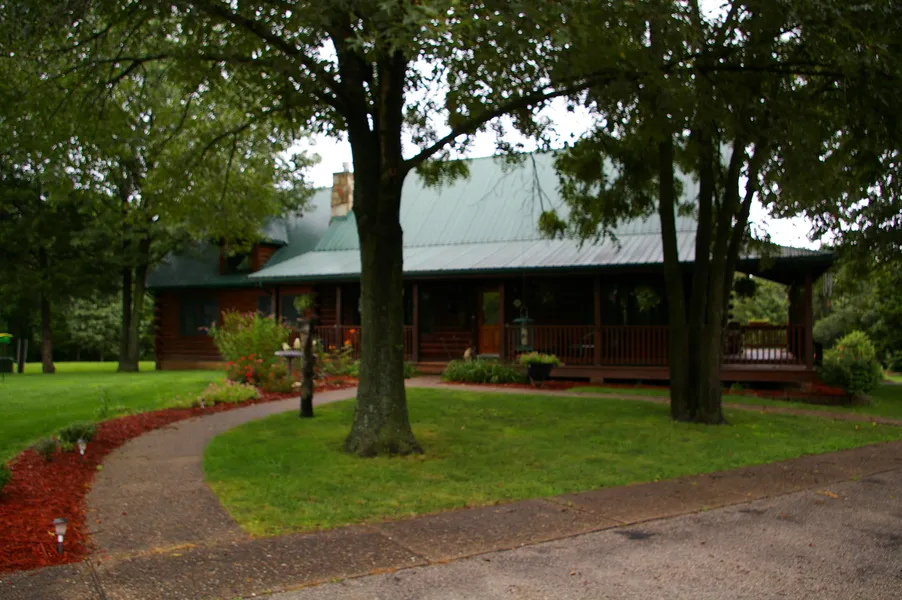 Set on a 53 acre country property is a magnificent 2 story log home and detached 3 car garage. The home features 4 bedrooms, 5 baths, cathedral room with over 30ft ceilings, 2 stone fireplaces and a large country kitchen with granite countertops and custom oak cabinetry. In addition throughout the home are hardwood flooring, ceramic tile, knotty pine and tongue and grove walls and ceilings. The property is well maintained and manicured with large front porch and wrap around deck overlooking lavish gardens. The acreage consists of 30 acres heavy timber, 15 acres rolling pasture, and 8 acres of homestead and grounds. Currently this property is being used as an alpaca ranch with stable and facilities which include a studio/cottage. The Possibilities on this ranch are ENDLESS from livestock breeding, horse training, boarding, riding lessons, business opportunities, hunting and recreation or private residence for personal enjoyment. $495,000
