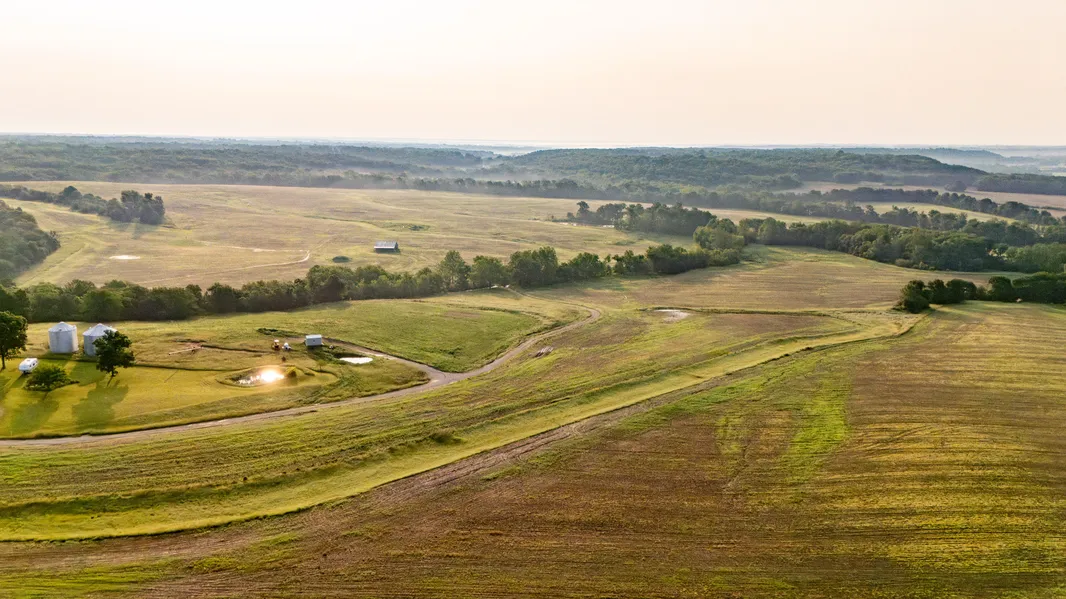 The farm is bordered by large blocks of timber, fostering a healthy population of deer, turkey, upland birds, and small game. The landscape includes gently rolling hills and fertile creek bottoms, with panoramic views that make it ideal for a future home, hunting lodge, or machine shed.