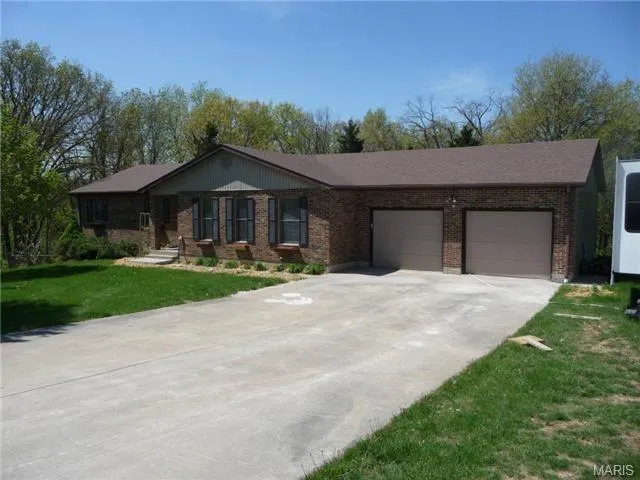 Spacious brick ranch with over-sized attached two car garage and walk-out basement on 3 mostly wooded acres. Located in Cedar Cove just off Highway M. Ralls County Schools. Home has 3 bedrooms and 2 baths. Master bedroom has walk-in closet and master bath. Large living room and separate family room with wood burning fireplace with blower. Breakfast area and separate dining room adjacent to kitchen, which has lots of cabinets. Propane oven/range, dishwasher and built-in microwave, and side by side refrigerator are included as well as washer and propane dryer.