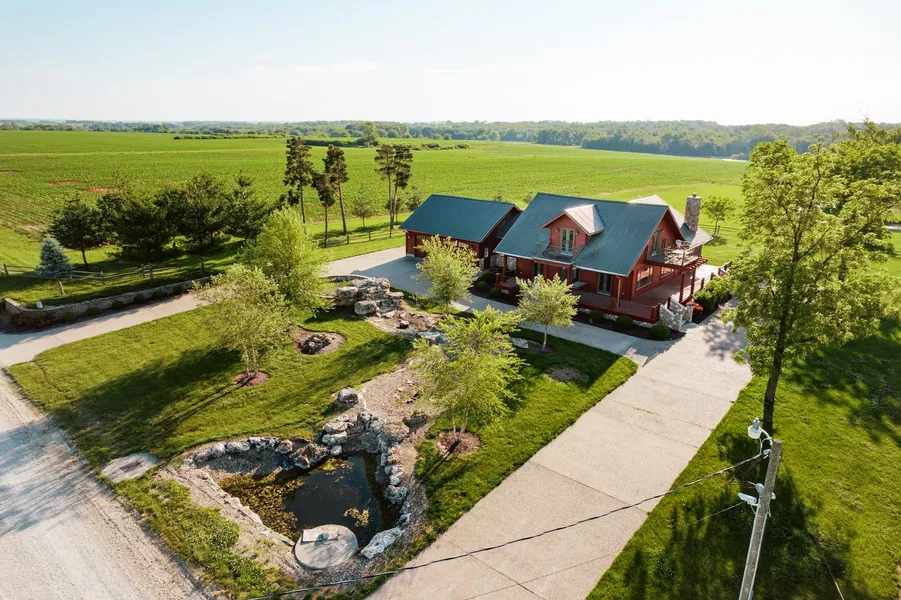 This beautifully restored lodge sits on 168 acres and overlooks a 3 acre lake. Turkey Creek runs through the property which is a great mix of fields and timber. FSA maps show 78.8 acres of tillable.