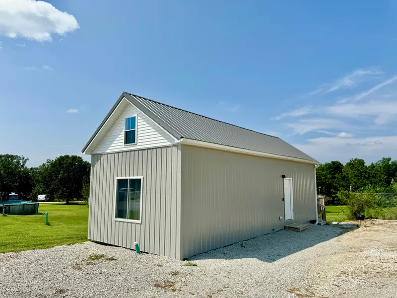 Escape to serenity at 19441 Salty Cedar Trail in Monroe City, MO, just moments from the scenic Mark Twain Lake! Would you rather own the entire campground? It's also for sale! Call for details. This newly constructed cabin offers the ideal blend of rustic charm and modern efficiency. With sturdy metal siding, energy-efficient windows and doors, and an all-electric setup. The open-concept main floor features a comfortable bedroom, full bath, and laundry hookups, while the loft provides an additional sleeping area and half bath. Soaring vaulted ceilings enhance the spacious atmosphere, and the included stove and fridge make it move-in ready. Sip your morning coffee on the rear deck, soaking in the peaceful surroundings. The HOA takes care of the community pool, lawn maintenance, snow removal, trash, and septic services, so you can relax. Short term rentals are allowed. Plus, with the Spalding boat ramp nearby, lake adventures are always within reach. Your tranquil retreat is waiting!