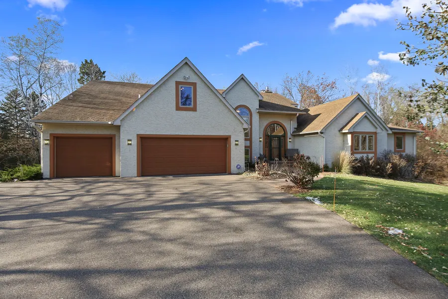 Secluded 2+ Acre Oasis surrounded by Aspen trees and ponds. Main floor bedroom with 2 walk-in closets, private deck, and new bath all with spectacular views of nature. Perfect main floor office as well. Vaulted ceilings, new kitchen and new 4 season porch with fireplace. Walkout lower level offers more hobby and office space as well as it's own guest room suite. Plenty of yard, play areas, and private pond. Space for every family member inside and out. Don't miss the additional storage/workroom accessed from rear of home.