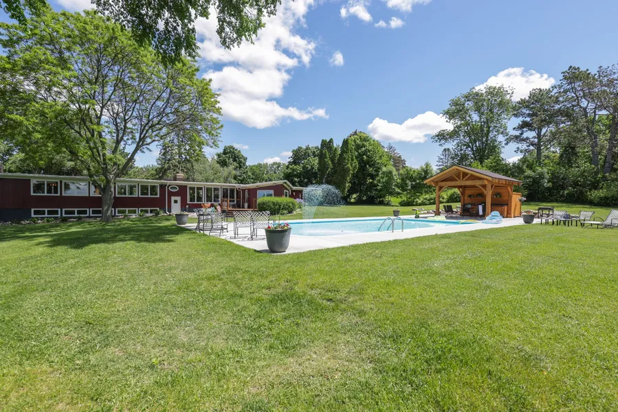 This Mid-Century Gem nestled in the serene and prestigious community of North Oaks is the only home on Martin LN. This lot overlooking the fairways and greens of one of the Twin Cities finest golf courses offers the opportunity to build your dream estate. This exquisite property boasts a stunning resort-like pool and breathtaking views. with an intimate connection with nature’s beauty. 2 Martin Lane is more than just a home; it’s a lifestyle choice for those who seek to reside in a community that values privacy, nature, and a rich historical backdrop. Experience the charm of North Oaks and the legacy of one of its first homes. The North Oaks Community is Private and Exclusive ensuring a secure and tranquil living environment. It is made up of approximately 900 acres of protected lands including a 620-acre Conservation Area. There are over 30 miles of private nature trails for hiking, biking, and cross-country skiing, & private lakes for swimming and water activities. New paint and carpeting.