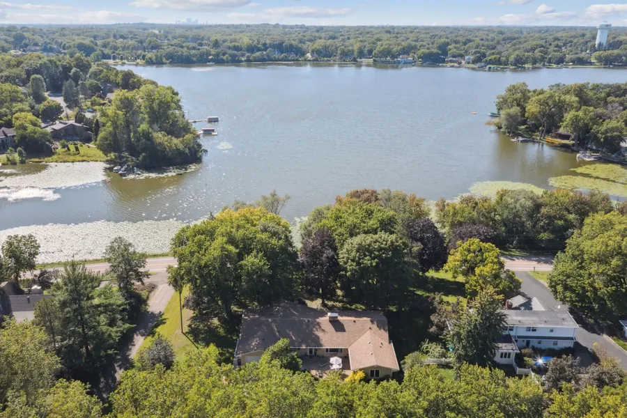 MUST SEE THESE LAKE VIEWS IN PERSON! Extremely well cared for sprawling rambler nesting on an acre of paradise! Breathtaking views of Lake Gervais from the front yard (west facing) and peaceful nature filled private setting in the back yard with flower gardens, landscaping, and back patio. Don't miss your opportunity to view in person all of the fantastic features of this nearly 5,000 finished square foot home! As you step inside, you'll be greeted by a warm and welcoming atmosphere. Beautiful lake views from the kitchen, living room, great room, bedroom and more. Host memorable family gatherings surrounded by highlighting he modern finishes and thoughtful design details throughout. The well-appointed kitchen is a chef's dream, complete with sleek countertops, ample cabinetry, modern appliances and ample space. So many features to note including new roof and gutters (August 2024). Hardwood flooring under carpeted areas on main level. Updated kitchen and bathrooms. Insulated garage. City water and sewer connected. Fully functioning well can be used for gardening, etc. Everything you need on the main level including main floor master bedrooms and laundry. Three zone heating/cooling. Located in a friendly neighborhood with excellent schools, parks, and local amenities just a short drive away. This home provides a serene yet connected lifestyle. Commuting is a breeze with easy access to major roads and public transportation options. Flexible closing options available.