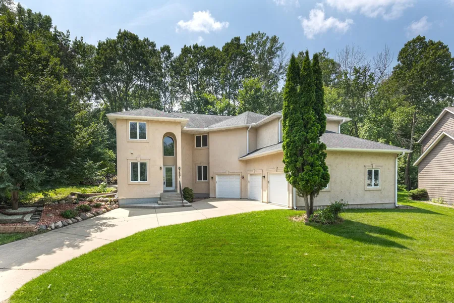 Custom built, executive home nestled on a private, wooded lot in Eagan! Breathtaking two story great room with walls of windows and beautiful hardwood floors. Spacious Kitchen with nearby formal and informal dining. Main level laundry, mudroom and home office space. Four bedrooms plus a loft upstairs, including a grand primary suite with full bathroom & walk-in closet. Finished lower level with a fifth bedroom and versatile family room space. Step outside to the low-maintenance, extensively landscaped lot with an abundance of mature trees. Exceptional entertaining spaces, inside and out! Newer appliances and top notch mechanicals. Stucco and vinyl exterior. Hurry, this exceptional home will not last!