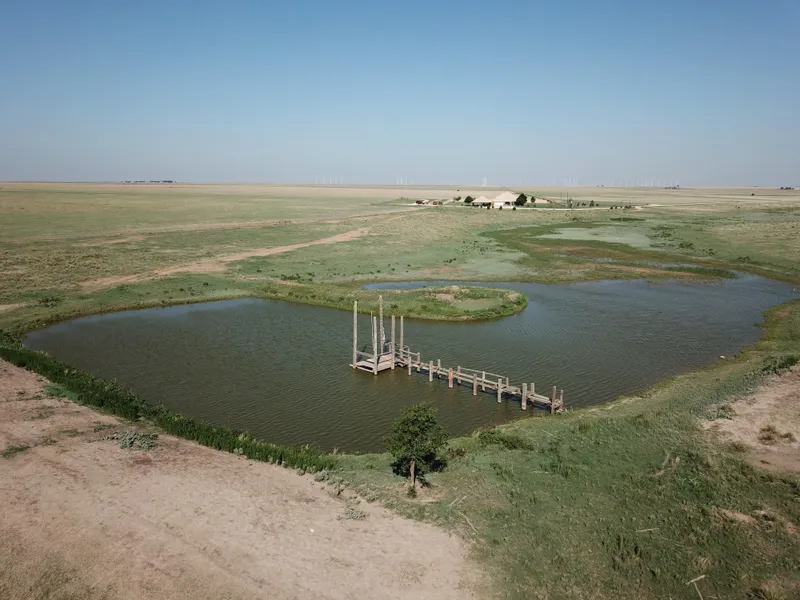 The ranch is well-watered, with 4 submersible wells and a pond near the main headquarters. Each pasture has water lines to drinking tubs in the fence line. The water quality is considered excellent. The pond serves as a water source for the approximate 75 acre horse pasture. Additional water lines with freeze proof faucets are found at many locations surrounding the barns, pens and house. The pond near the main home is stocked with catfish and bass, and is over 1 acre in size and includes a dock. The nearby water well on a timer insures the pond stays full in periods of drier weather.