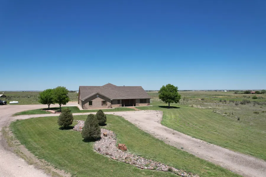 This 63.32 +/- acre gem is a rare opportunity located just 6.5 miles south of Canyon, TX, on Buffalo Lake Road (FM 1714). It truly has everything you could want in a country property! The custom three-bedroom, two-bath brick home built in 2005 features 2,338 sq ft of thoughtfully designed living space. The isolated master suite includes his and hers closets, a soaking tub, and a spacious walk-in shower. Two additional bedrooms share a hall bath on the opposite side of the home, with a centrally located bonus room perfect for an office, craft space, or media nook. The open-concept kitchen and living area flow seamlessly into the heart of the home—a 1,413 sq ft climate-controlled indoor/outdoor entertainment haven. Soak in the hot tub, swim in the endless pool, and take in sweeping, unobstructed views through a wall of windows. With surround sound, a vent hood, and a cozy fireplace, it’s a showstopper for entertaining family and friends. Open the surrounding windows and doors to welcome in the cool evening breeze or the scent of spring rain.