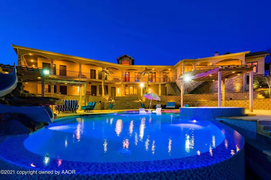REAL PROPERTY: This is a rare, hard to find, 6 acre gated residence in the River Falls community. The multi-level 6848' Custom Home features, 7 bedrooms, 8 baths, 3 car garge, with an Infiniti Pool and additional 1300' Basement. Amenities in the River Falls neighborhood include a Private Airport, Equestrian Center, Par 3 Golf Course, Driving Range and direct access into the north end of Palo Duro Canyon for endless outdoor adventures. Enjoy the privacy of country living with shopping, dining, recreation and entertainment just minutes away. Easy access to Downtown Amarillo, Canyon, Interstates 27 & 40 and Hwy 60.