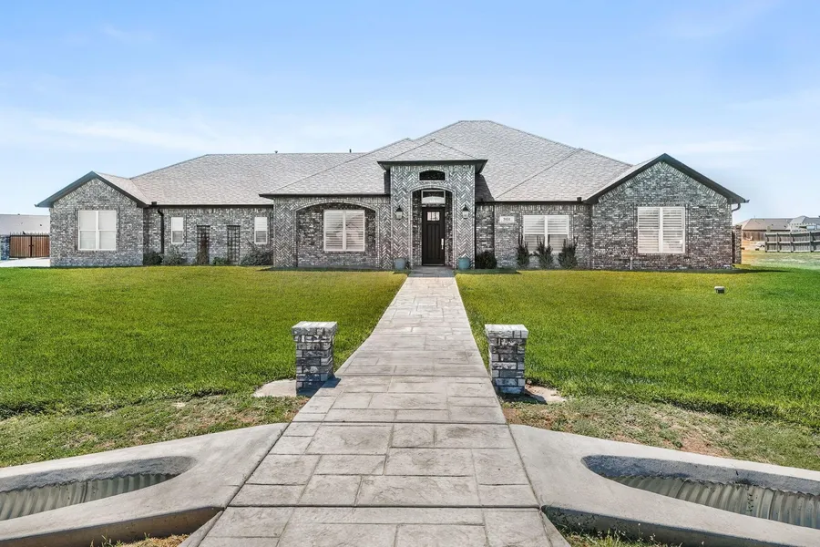 Luxury custom home in Strawberry Fields! This thoughtfully designed, one-of-a-kind property is an entertainer's dream! The kitchen boasts a 5ft x 10ft island crafted with an alder base, quartz countertops, and was built to be the center of this home! The kitchen is equipped with Thermador appliances and include a 6-burner range, double ovens, convection microwave, and dishwasher. The custom cabinets were constructed around the built-in refrigerator and a wine fridge. The large dining area has a buffet area with cabinetry for extra storage and display. The walk-through pantry leads to and additional utility with a dog wash area and can house additional refrigeration. The main utility area has a sink, folding area, and mud area. The heart of this home is in the spacious living area! Check out the beautiful beamed ceilings, gas fireplace, and built-in entertainment cabinet! Head to the north wing and find 3 spacious guest bedrooms with walk-in closets and a beautifully decorated hall bath. The primary suite is an owner's dream! The ensuite has a large walk-in shower with bench, jetted tub, double vanities and heated floors! The custom closet has built-ins and is designed for efficiency!