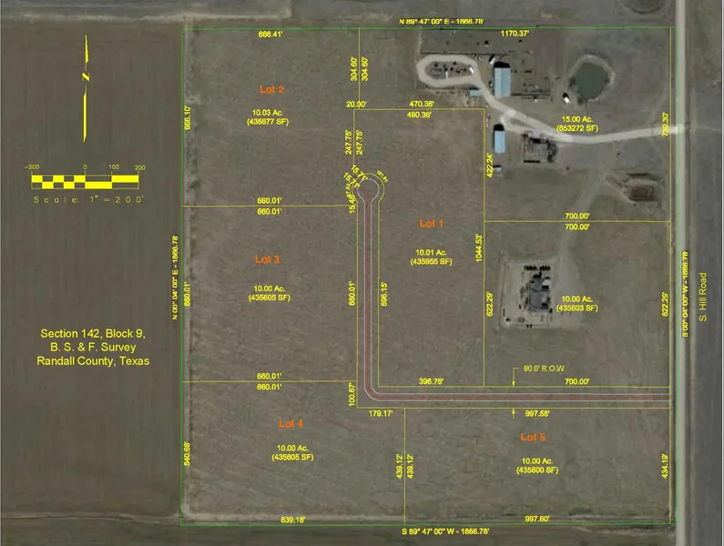 Lots: 5 lots ranging from 10 to 11 acres each in size.