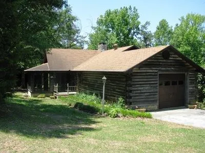 Log Home on private 2 acres with a pond. Home features great room with vaulted ceiling, large stone fireplace and wood burning heater, split bedroom plan with 3 bedrooms and 2 baths, kitchen appliances include stove/oven, dishwasher and microwave, sunroom with glass surround windows. Other features include wood floors, partial unfinished basement, and one car garage with plenty of space for a work area. Wonderful view of lake from deck. Great Location near Beautiful Lake Wedowee! Home needs some TLC. Priced below tax assessment! $99,900