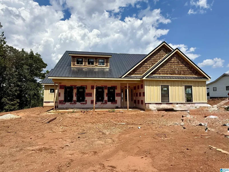Custom built home with a million-dollar lake view! Located on the south end of Lake Wedowee, this new construction offers 3 beds, 2.5 baths, over 2,200 sq ft of living space, and 1,000 sq ft of porches. Enjoy a frameless glass sliding door system for unobstructed lake views. Custom finishes will include 10’ ceilings, 8’ interior doors, quartz countertops, custom cabinets, LVP flooring, tile baths, wet room in the master, and a 4’ gas cooktop. All kitchen appliances included. Indoor and outdoor fireplaces add to the charm. Exterior finishes include hardie board siding, real cedar shake, stone skirting, and flagstone porches. Enoy the community boat ramp for easy lake access and a dedicated boat slip. Estimated completion: Mid-October 2025. Don’t miss this rare opportunity for luxury lake living!