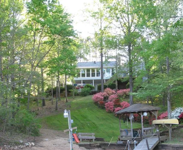 BEST BUY on the lake!! Your MONEYS WORTH and then some.....is what you get with this fabulous set up! Lovely 4bd 2ba sits on GENTLE sloped lot (park-like setting)landscape, covered pavillion and floating dock, PRIVATE cove w/launch! Open/spacious greatrm w/FP, glassed sunrm overlooking lake, lg deck for grilling/relaxing, mastr suite w/addt'l bonus rm for bdrm/office, walk-in laundry, dble car garage, pvd rd & public wtr. Convenient to town/resturants/gas low maintenance and natural landscape. Sellers are MOTIVATED! Drastically reduced~was $319K....BRING ALL OFFERS, MUST SELL! Move in READY!