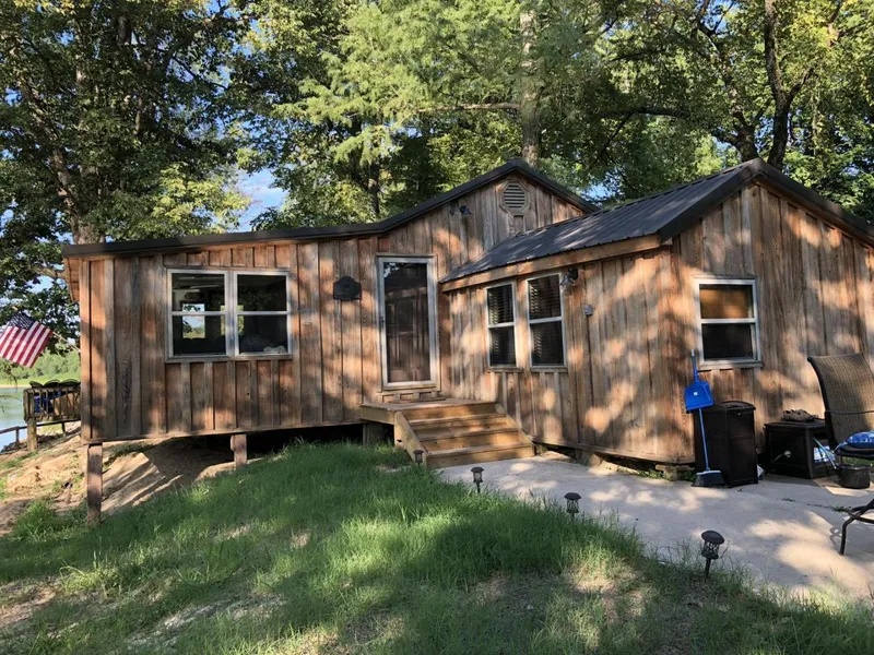 Newly renovated cabin sitting on the banks of Current River near Reyno, Arkansas. Beautiful setting with shade trees overhead and 5 lots to give plenty of elbow room from any neighbors. New appliances in the main cabin as well as the cook shack. Cook shack has kitchen, appliances, 1/2 bath, and futon for sleeping additional people. Two large decks with a patio...with an outdoor shower on the main deck. Cabin is equipped with Arlo security cameras and has gated entrance. By appointment only!