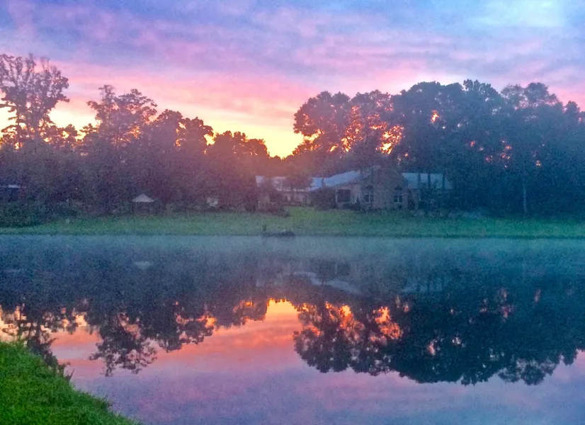 There is 3 bedrooms and 3 1/2 baths within the house with cement flooring throughout the kitchen, living room and bedrooms, 2 wood burning fire places and a sunroom with hardwood flooring and pine walls and ceilings, along with a custom kitchen with stainless steel appliance and granite countertops, an exercise room and in home office. The home is equipped with a metal roof and a beautiful deck overlooking the pond.