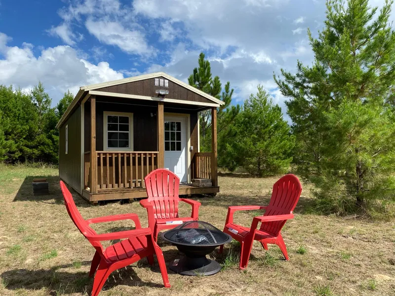 The Cabin is Actually a Pimped Out 12 X 40 Shed with Custom Walls and Flooring, a New Window Unit, 9 Power Outlets, Perfect Spot to Spend the Night in Comfort.