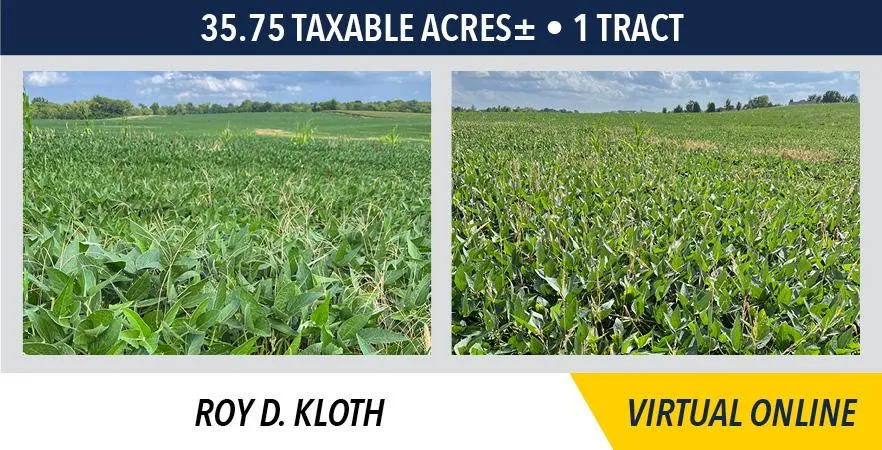 The Roy D. Kloth farm will be sold on a price per acre basis, based on taxable acres.
