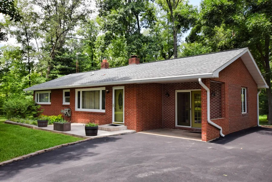 Located on 7.19 acres sits a charming 3 bedroom brick home nestled in the woods. Newer windows and carpet throughout the house, updated bathroom with ceramic tile shower, blacktopped circular driveway, and new septic system are some of the upgrades. The home features a living room with brick wood-burning fireplace with mantle, dining room, and large kitchen with breakfast bar, oak cabinetry, electric stove, microwave and refrigerator. The kitchen leads to a 423 sq ft wood deck and brick patio, great for entertaining. Full basement has a spacious family room with freestanding wood burning fireplace, office, bathroom and laundry room. Central air and heat pump were added in 2010. The property has 24x40 pole barn with overhead doors plus 24x28 carport for additional covered parking. Surrounded by mature trees and beautiful landscape, you will feel like youre living at a resort. Great for hu...