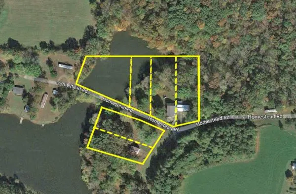 Excellent recreational property opportunity! This property consists of 6 lots totaling 4.91+/- acres, 2 shared lakes, and a move in ready 1,724+/- SF, updated 2BR/2BA home & 2 pole barns. The first pole barn is a heated 30 x 50 w/ 6 concrete floor & 20 x 16 loft; the second 30 x 38 pole barn is used for storage but could be finished to be a cabin. There is a 2+/- Acre stocked lake on the property and access with fishing rights to the neighboring 6+/- Acre Lake. Both lakes are stocked with Crappy, Blue Gill, Bass, & Walleye. The 2 bedroom home is situated on a walk out basement and offers numerous updates. The updates include a newer furnace, water heater, and water softener as well as a new seamless steel roof, vinyl siding, and double hung Anderson windows, in addition to solid hickory cabinets in the kitchen. There is also an elevated, partial wrap around deck and a 1 car attached garage.