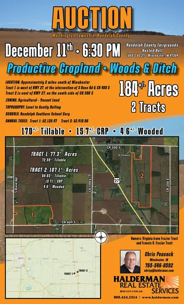 General Location: Approximately 2 Miles South Of Winchester. Tract 1 Is West Of HWY 27, At The Intersection Of S Base Rd & CR 400 S. Tract 2 Is East Of HWY 27, On The South Side Of CR 300 S.