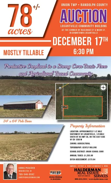 Legal Description: 79 acres, more or less, located in part of the NW 1/4 of S16, T18N, R12E, Union Twp, Randolph County, State of Indiana.
