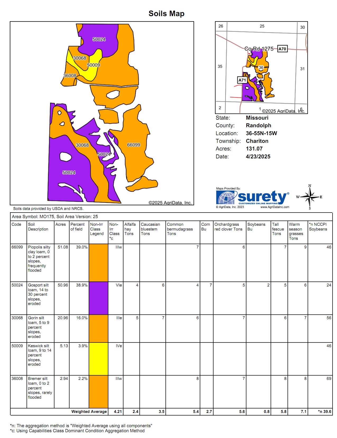 Search for detailed parcel information including; Elevation & Vegetation Maps, Ownership Information, Detailed Parcel Information, Crop History Map, Soil Survey Productivity Data, and more.