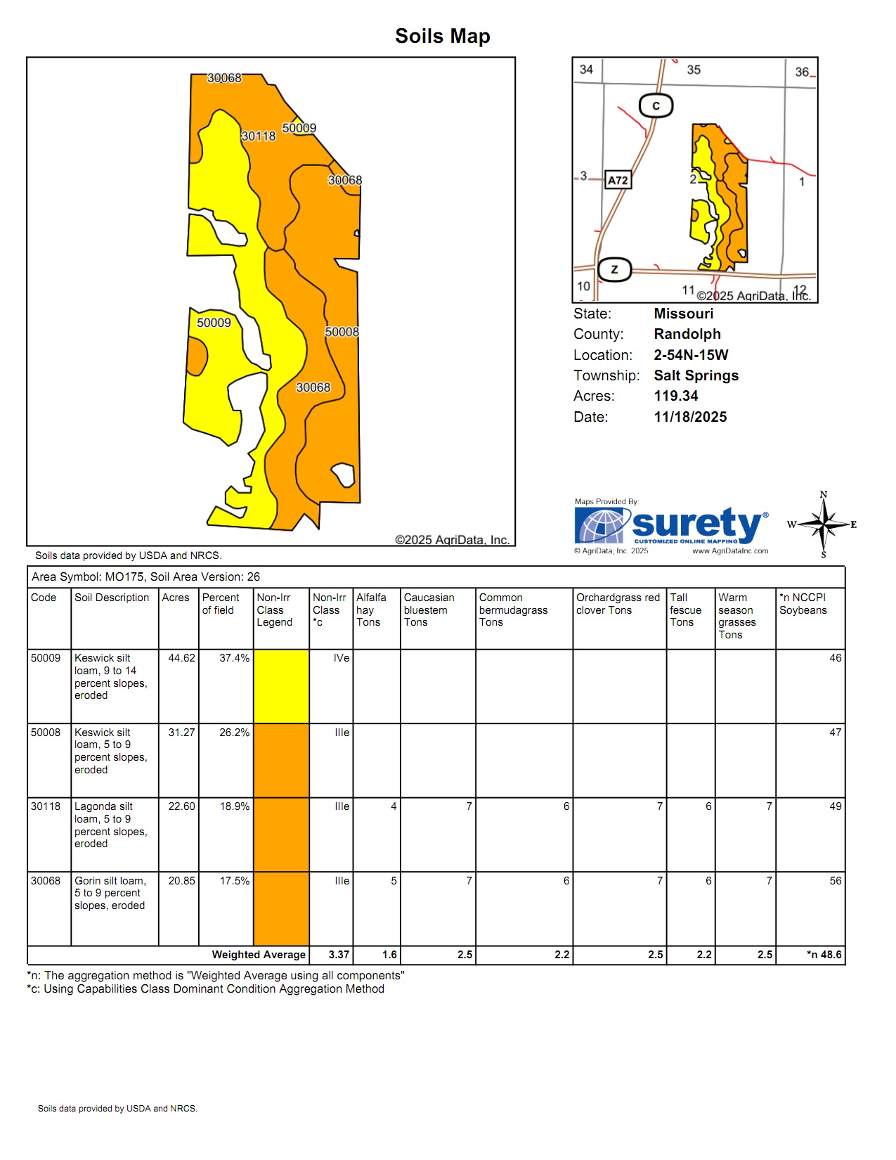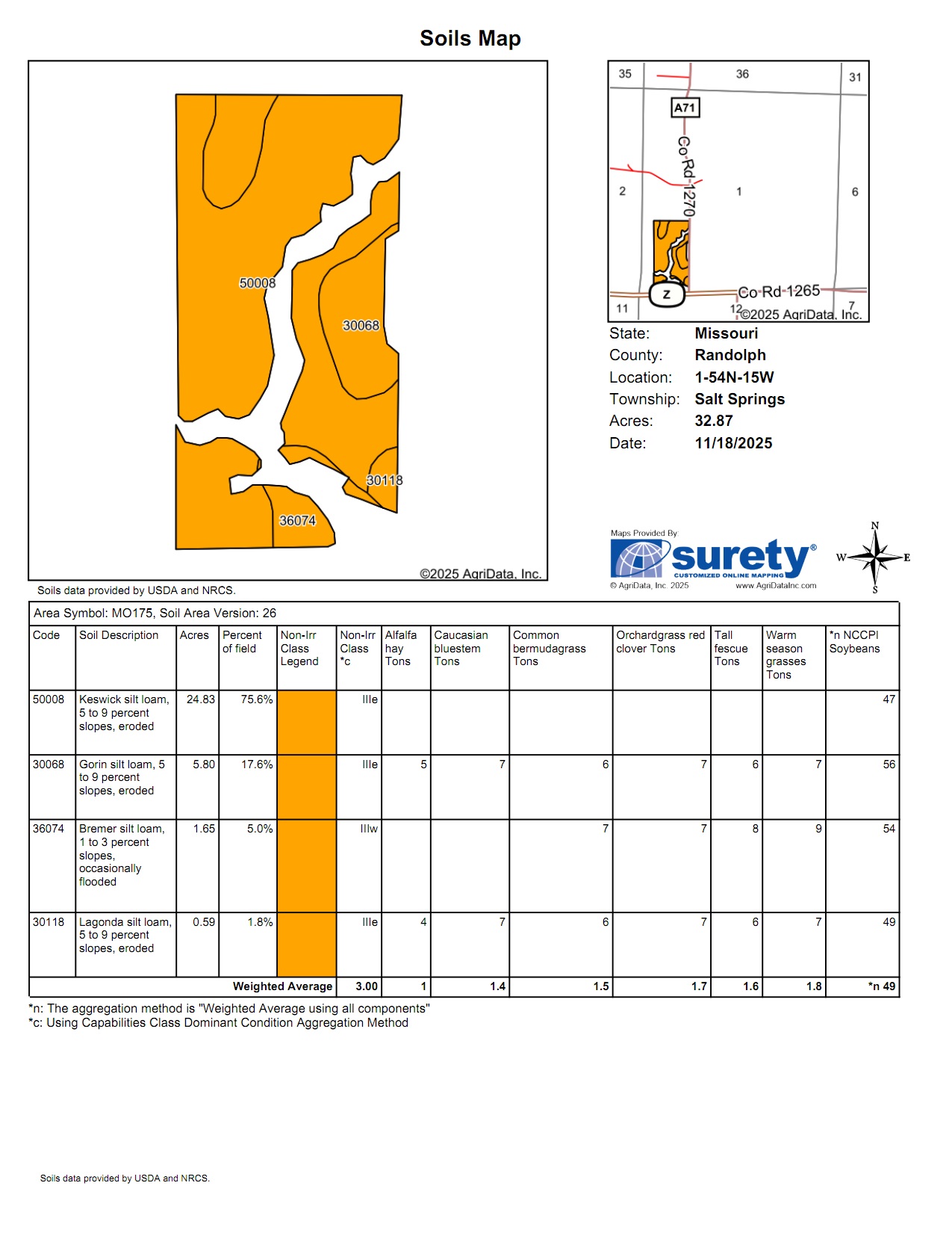 Soils: Gorin, Keswick, Lagonda Silt Loam