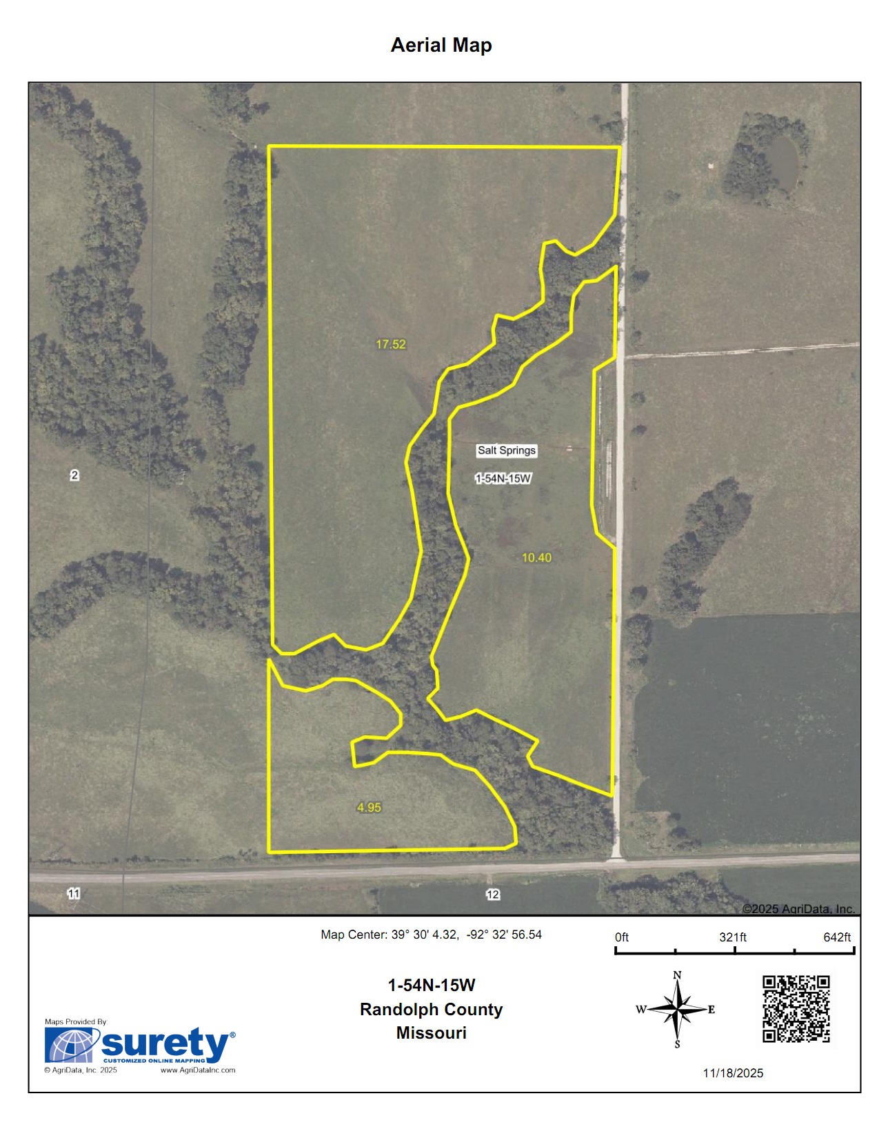 Here is a rare chance to purchase prime tillable and recreational land in highly sought-after Randolph County, Missouri. This exceptional property totals 299.6 acres, professionally surveyed into four quality tracts suitable for farming, building sites, and outdoor recreation.