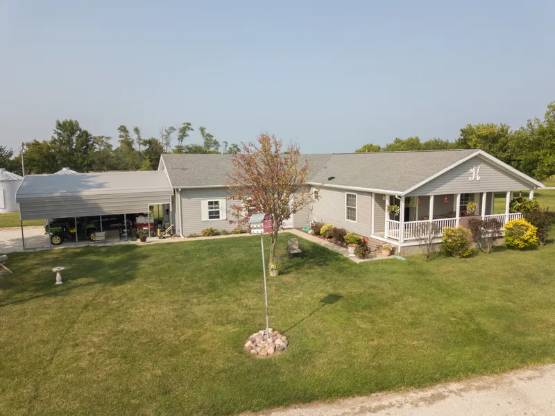 Very attractive setting 3 bedroom doublewide situated on 6 plus acres with 2 car attached garage. Covered deck overlooking beautiful swimming and fishing lake with a dock. 2 large outbuildings. *Carport does not convey*