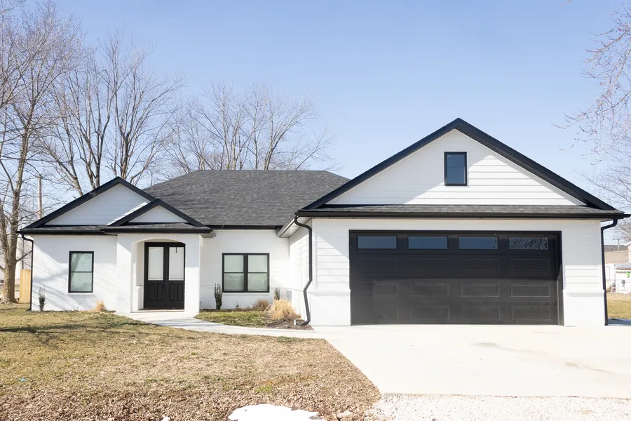 Brand new home, custom built in Cairo school district! This high-end home features 10 ft coffered ceilings throughout. Over 2000 sq ft with natural light coming in from all directions. Open floor plan allows you to be in the kitchen while visiting others in the living and dining areas. Kitchen has tons of storage & abundant workspace w/quartz countertops & cabinets that flow to the ceiling to give it an up to date and modern look. Living room has a built-in electric fireplace. The pinnacle of the home is primary suite that has plenty of space for a massive bedroom suit with a walk-in dream closet. The primary bathroom features a large soaking tub & separate tiled shower. Includes a home office and very energy efficient! With striking curb appeal, this home has white brick front, recessed lighting, w/smart siding. Att'd 2 car garage has over 800 feet of storage above. The massive back yard has a private wood fence & det'd 24x30 garage w/half bath. Sits at edge of town on a corner lot.