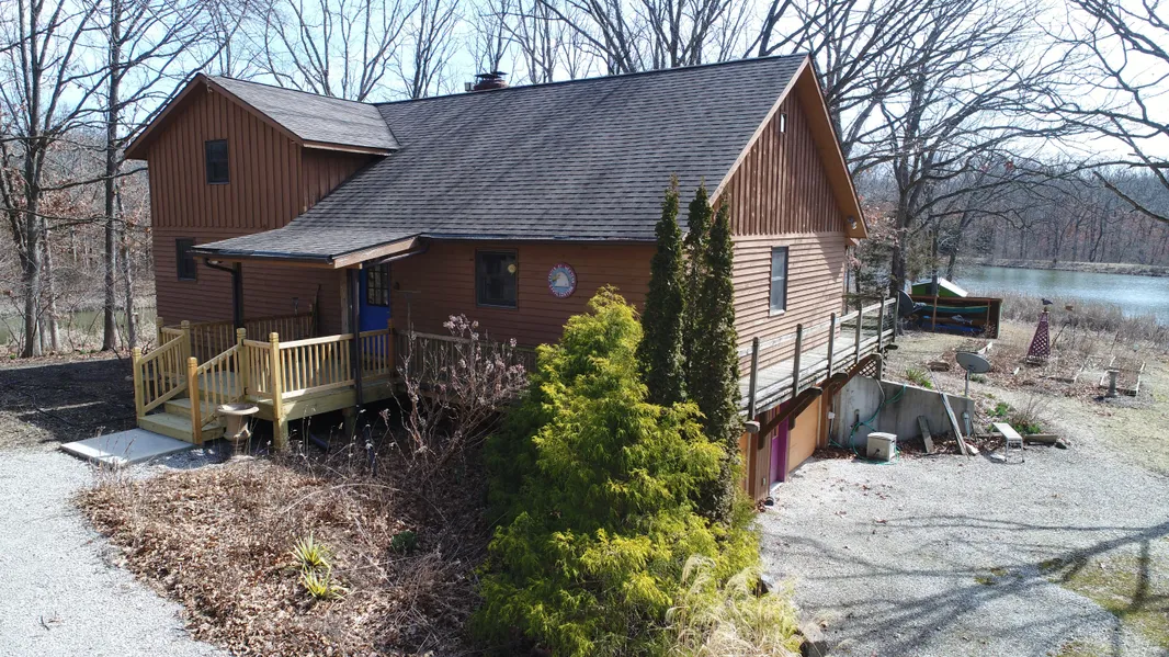 An original settlers cabin from 1850 was deconstructed and moved from Cairo, Mo to this location and forms the core of the home. The cabin logs are oak, and the paneling and beams were sawn and milled on the property in 1988-89 when the home was being built. All of the oak kitchen cabinets were custom made by the builder. The home has a wood fireplace in the master bedroom and also in the family room. There is a sunroom overlooking the lake. The house can be supported by a whole house generator that was installed in 2021. Come take a look and enjoy the beautiful views and the peaceful surroundings.