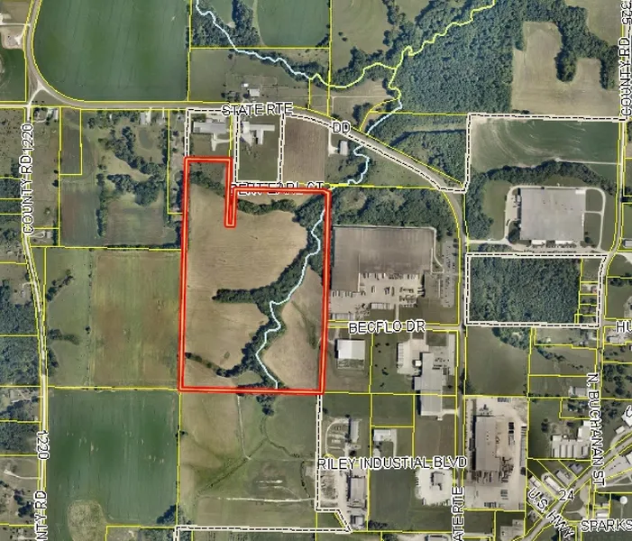 61 acres located behind an existing industrial park. Road leads up to entrance, easy access to Highway 24. Multiple businesses along this area. Utilities are onsite and ready to be tied in.