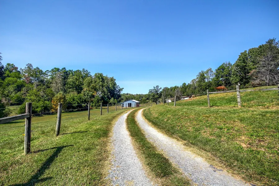 At the end of country cul de sac lane lies a unique opportunity. Along both sides of a long private drive. Approx. 6.9 acres. 1984 manufactured home 3 BR 2 Bath. Well maintained. Elevated ceilings. Open floor plan. Center aisleway 7 stall Barn w/tack room & over hang. Creek & several springs. Pasture is cross fenced. Additional outbuildings for livestock, equipment & storage. Minutes from major hwy. & Greensboro Triad. Subject property has access to fiber optics.