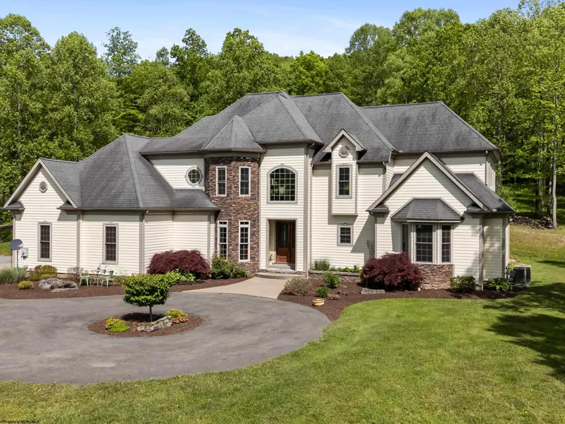 Striking 3-bed, 3.5-bath home on over 3 acres, offering space, comfort, and versatility just minutes from Elkins. The main level features a vaulted great room with a floor-to-ceiling stone fireplace, granite kitchen with custom cabinetry, and a spacious primary suite. Upstairs, you'll find two additional bedrooms, each with their own private bath, plus a loft perfect for a home office or reading nook and a gathering room which serves as a home theater. Outdoor living shines with a stamped-concrete patio featuring a pergola and built-in gas fireplace—ideal for entertaining or relaxing. The partially wooded lot offers a mix of level and sloping terrain for added privacy and natural beauty. Additional features include an invisible fence around the property for dogs, hardwired landscape lighting, an attached 2-car garage, and a heated 36x56 detached garage with game room perfect for a worksh...