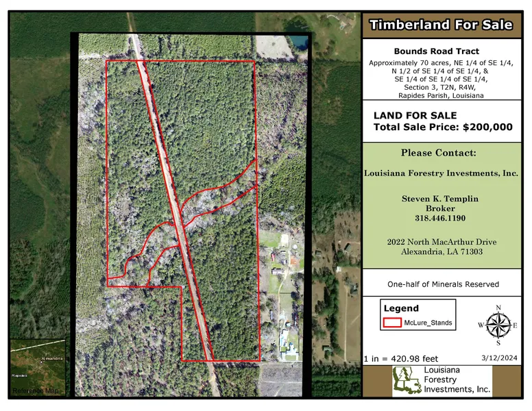 Property Description: 70 acres, more or less, being the NE of the SE , and the N of the SE of the SE , and the SE of the SE of the SE , Section 3, T2N, R4W, Rapides Parish, Louisiana.