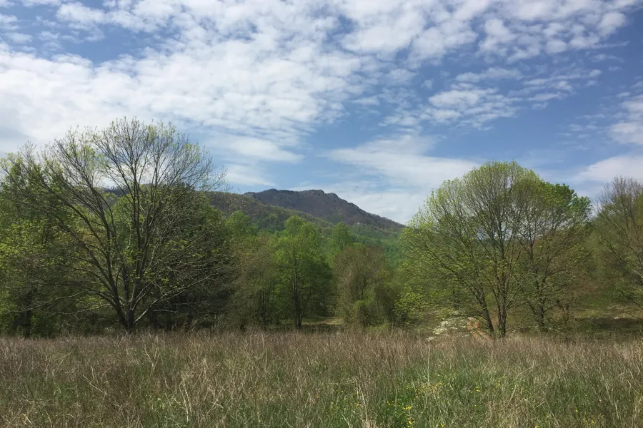 This private 8 acre parcel was has a splendid home site on a gentle knoll that opens to towering mountain views. Stands of mature hardwoods protect your privacy and a small tributary of the Hughes River meanders along the northwestern border.