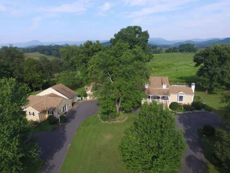 A paved driveway off Sperryville Pike winds through a dense forest and past a woodland pond to the home which is sited on a high, broad knoll. Improvements include the main manor house, guest house, an six bay garage, attached two car garage, a workshop and a potting shed.
