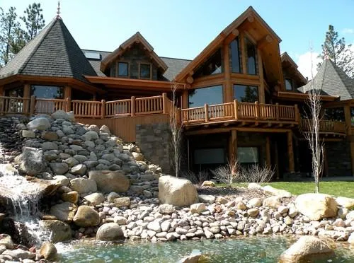 Custom Log Castle Design with gorgeous water feature