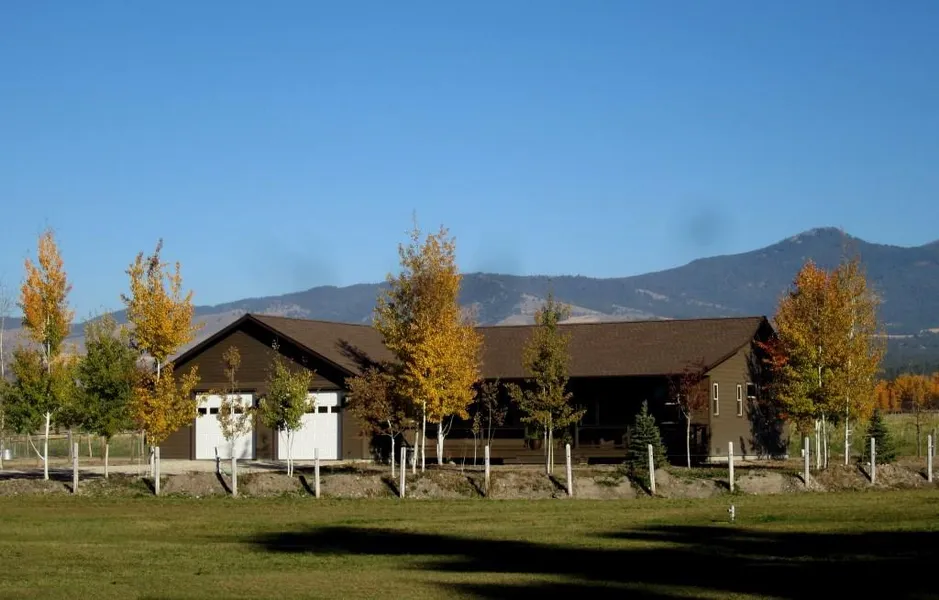 Classy home with extraordinary setting surrounded by land protected as open space. Willow Creek runs through the property. Paved access, historic barn, rich soil for gardens, fenced. Home is brand new! Rich finishes throughout. Sod yard not complete. Kitchen counter to be completed by buyer with material of their own choice. Very desirable area of country homes.Great mountain views of both ranges.