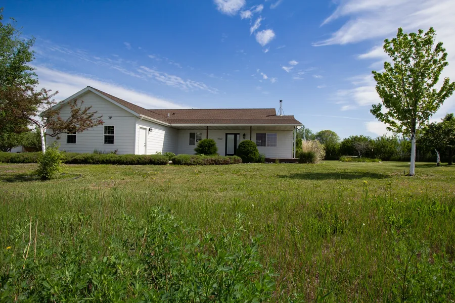 Outside you will find a wrap around deck on two sides of the home with a covered front porch , multiple fruit trees, garden beds, and mature perennials. The area surrounding the home has under ground sprinkl...