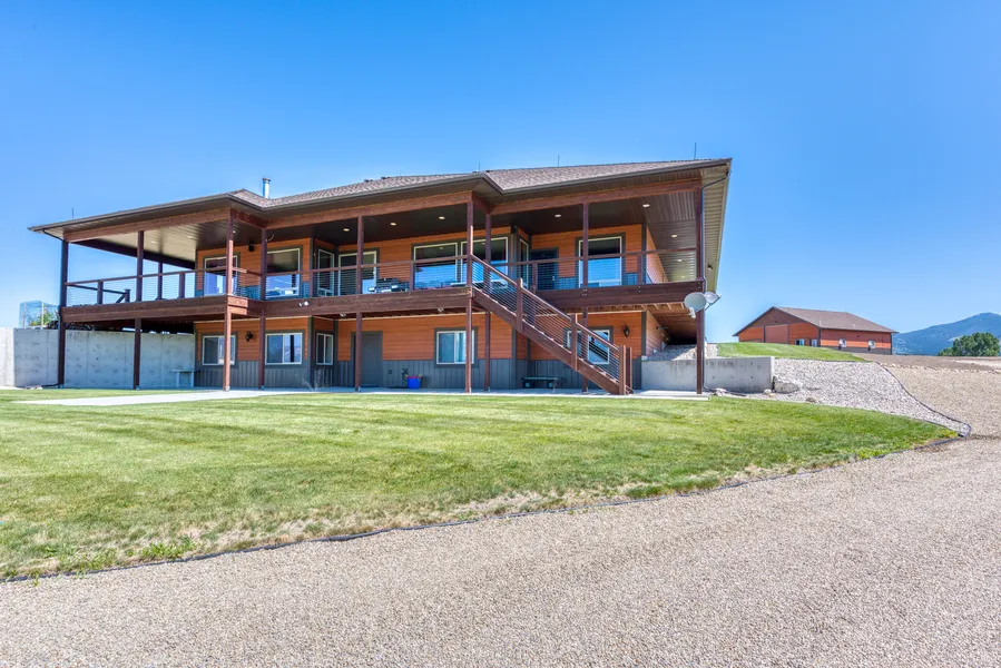 Top of the world views from this extraordinary setting just NE of Hamilton overlooking the entire Bitterroot Valley. Lovely home & contemporary shop on 10 acres. Relaxing and comfortable, this well designed floor plan lets you take in the majesty of the Bitterroot Valley from every window thruout every season. Efficient heating & cooling Geo-thermal system, surround decks, inviting kitchen, living and dining areas and quality extras throughout. Full finished daylight walkout basement with additional kitchen for extended family,guests, incls: family room, bdrm bonus rooms. Large 3 stall RV shop with 1 bdrm apartment, fully finished and insulated. So much to enjoy and take in from this easy maintenance home. Close to town, very private, and views that truly go on forever, exceptional.