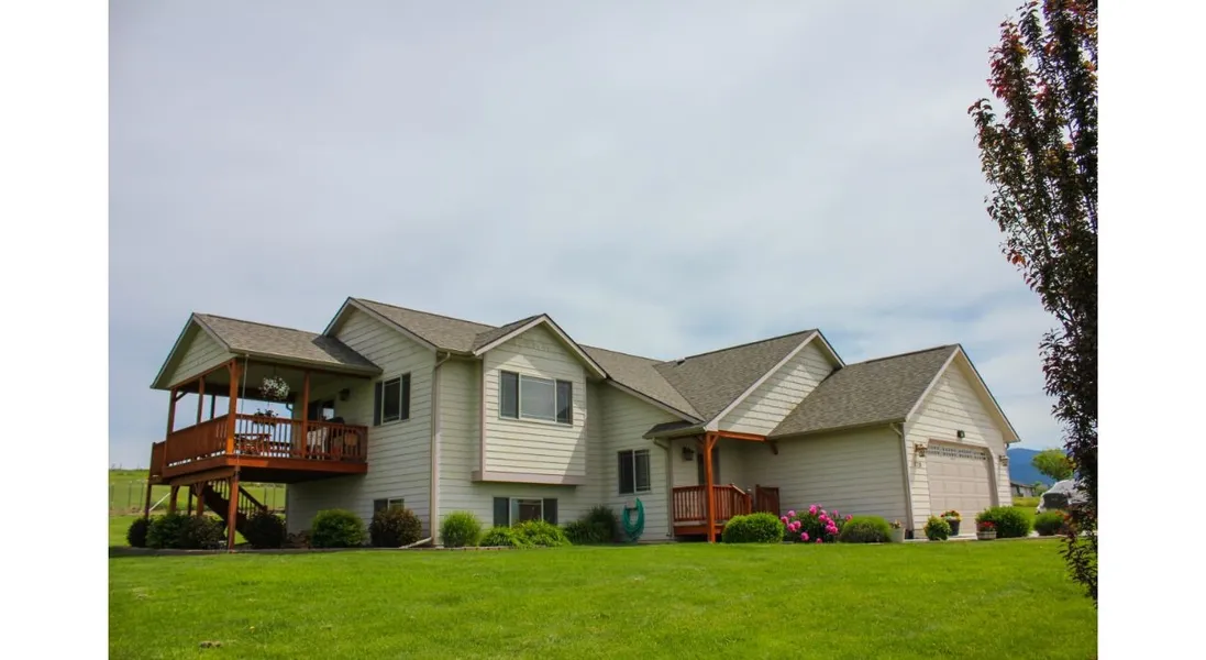 4710 Linhart Lane in Stevensville Mt is exactly what you're looking for and more. This 4 bedroom, 3 bath home sits on 2.5 level acres at the end of a very quiet neighborhood. As you come in through the front door you're greeted by a warm and inviting entrance, that leads you, either upstairs or downstairs. Upstairs you'll find an open concept kitchen, living room, dining room, one-bedroom, and the bedroom suite, complete with a very large walk-in closet, and beautiful master bath. A 2nd bathroom and laundry room finish the upstairs off nicely. Downstairs you will find a nice large living area, that is currently set up as a game/entertainment room, 2 more bedrooms, a full bathroom, and a very large storage room. The home is complete with beautiful laminate flooring upstairs and down, stainless steel appliances, vaulted ceilings, which really creates a warm &cozy atmosphere. Enjoy coffee in the mornings, and dinner in the evenings on your beautiful deck, overlooking the Bitterroot Mountain range and the equally beautiful valley.