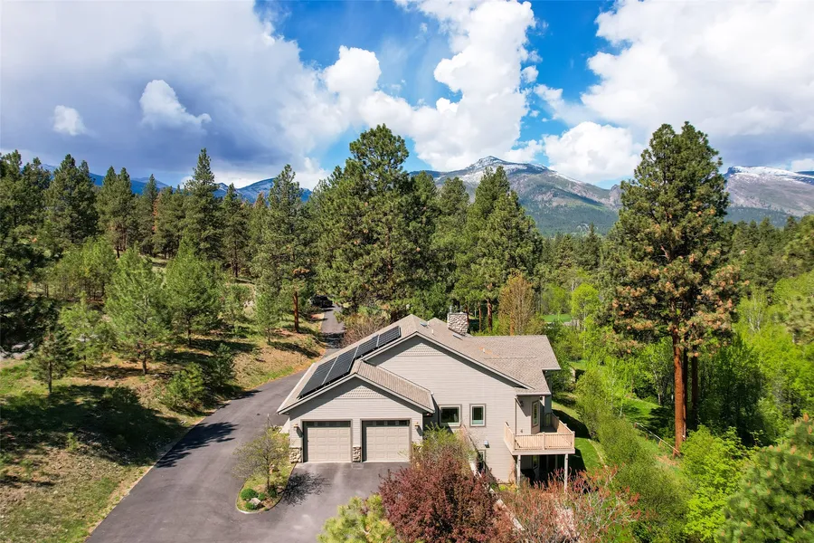Quiet Falls is an appropriate name for this one-of-a-kind setting and spectacular home in Montana's Bitterroot Valley. Enjoy fishing in Blodgett Creek and picnicking by your private pond. Gaze at Blodgett Canyon and valley views from the deck of this exceptional Custom Built 3800+SF home. The large Principal Suite on the Main Level offers a walk-in closet, private balcony, walk-in shower, and soaking tub. Great office w/ custom built-ins for the work-from-home workforce. Custom Kitchen offers granite, a breakfast bar, pantry, and top-end appliances. Floor-to-ceiling stone fireplace in the living room, formal dining, 3/4 bath, laundry, and access to decks, porches, and garages round out this zero-entry first level. The lower level offers a walk-out to more outdoor living spaces, a family room, a wood stove, 2 more big bedrooms, and bath. Efficient heating and cooling include solar panels....